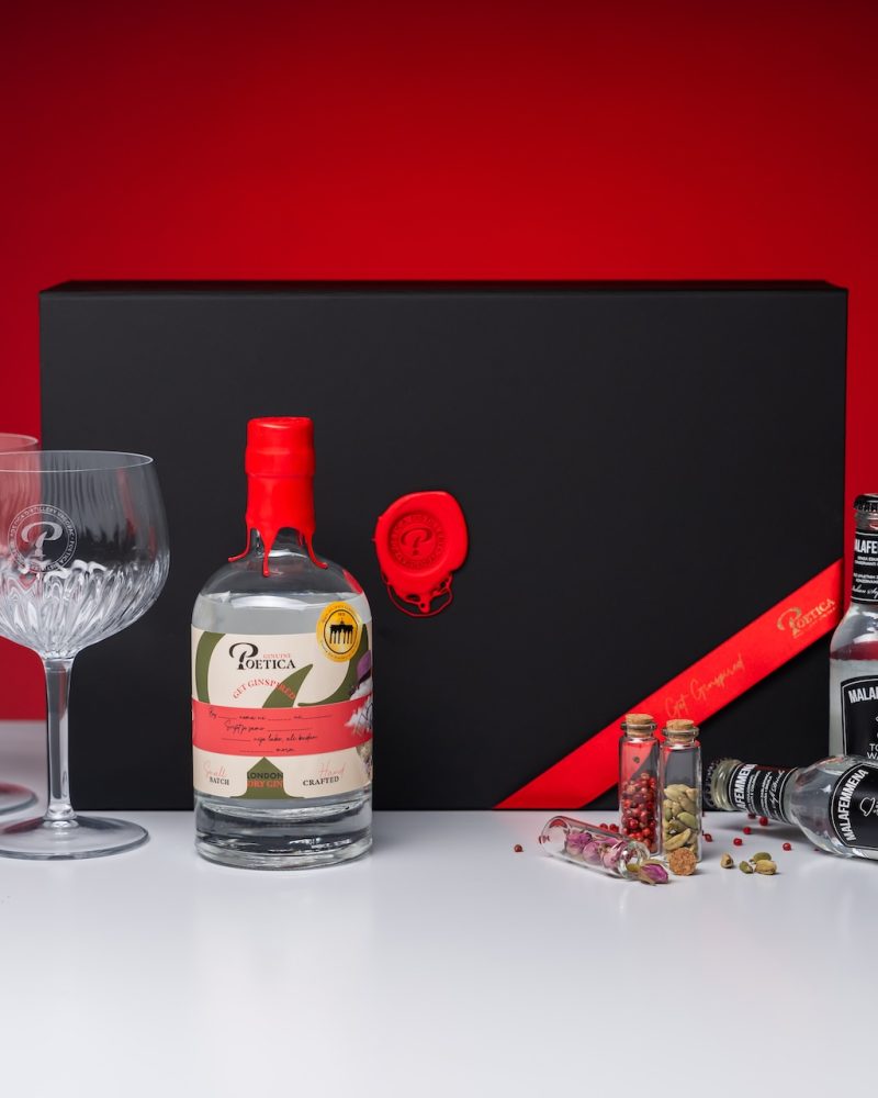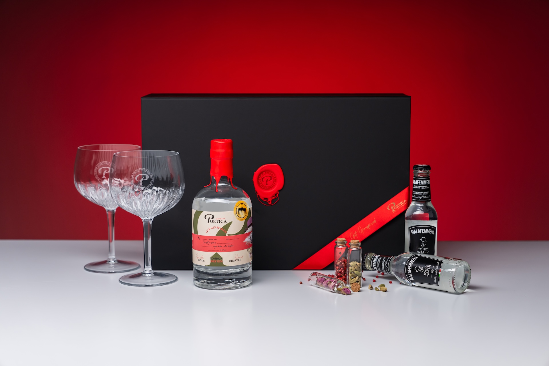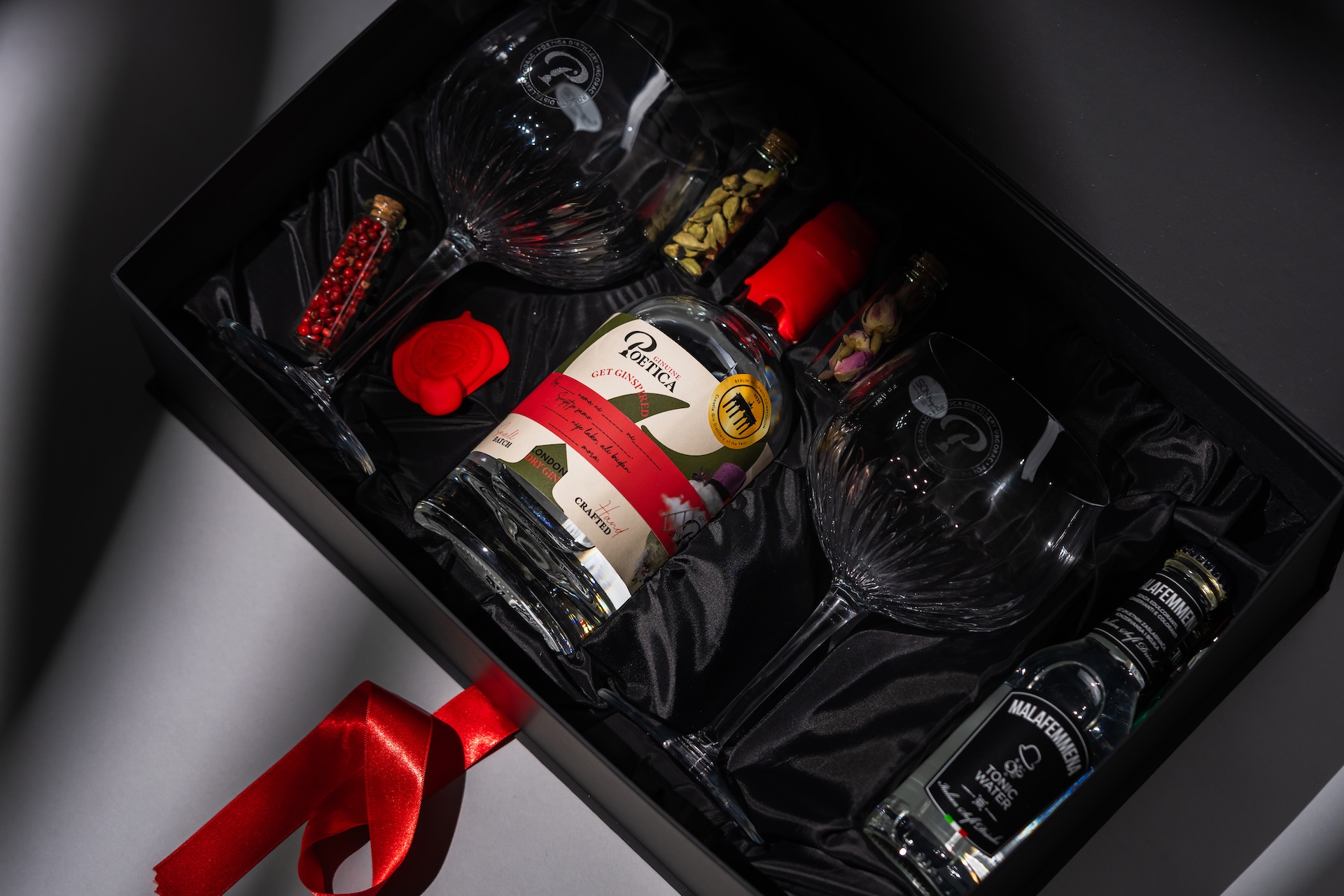 Poklon kutija koja ima zvučni modul i u trenutku kad se otvori recitira poeziju koja je napisana na etiketi boce Poetica Ginuine gina. U pakiranju je Poetica Ginuine 0,7 l , čaše za gin x 2, Tonic 0,25 x 2, začini za gin